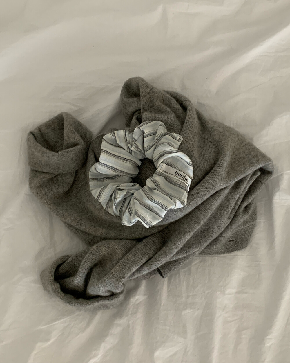 무채색 계열 옷에 포인트가 될 gray+sky(L) 스크런치입니다.