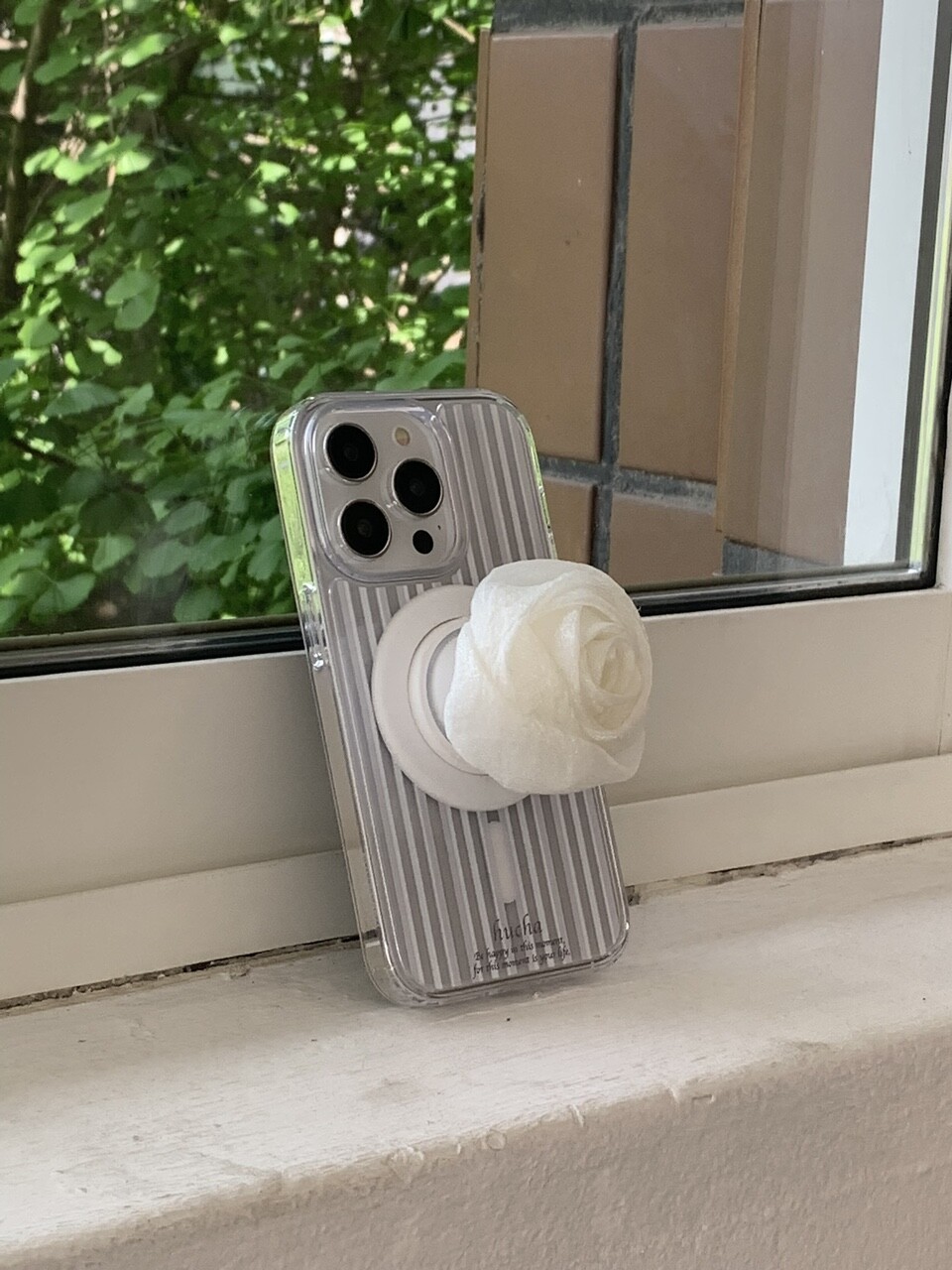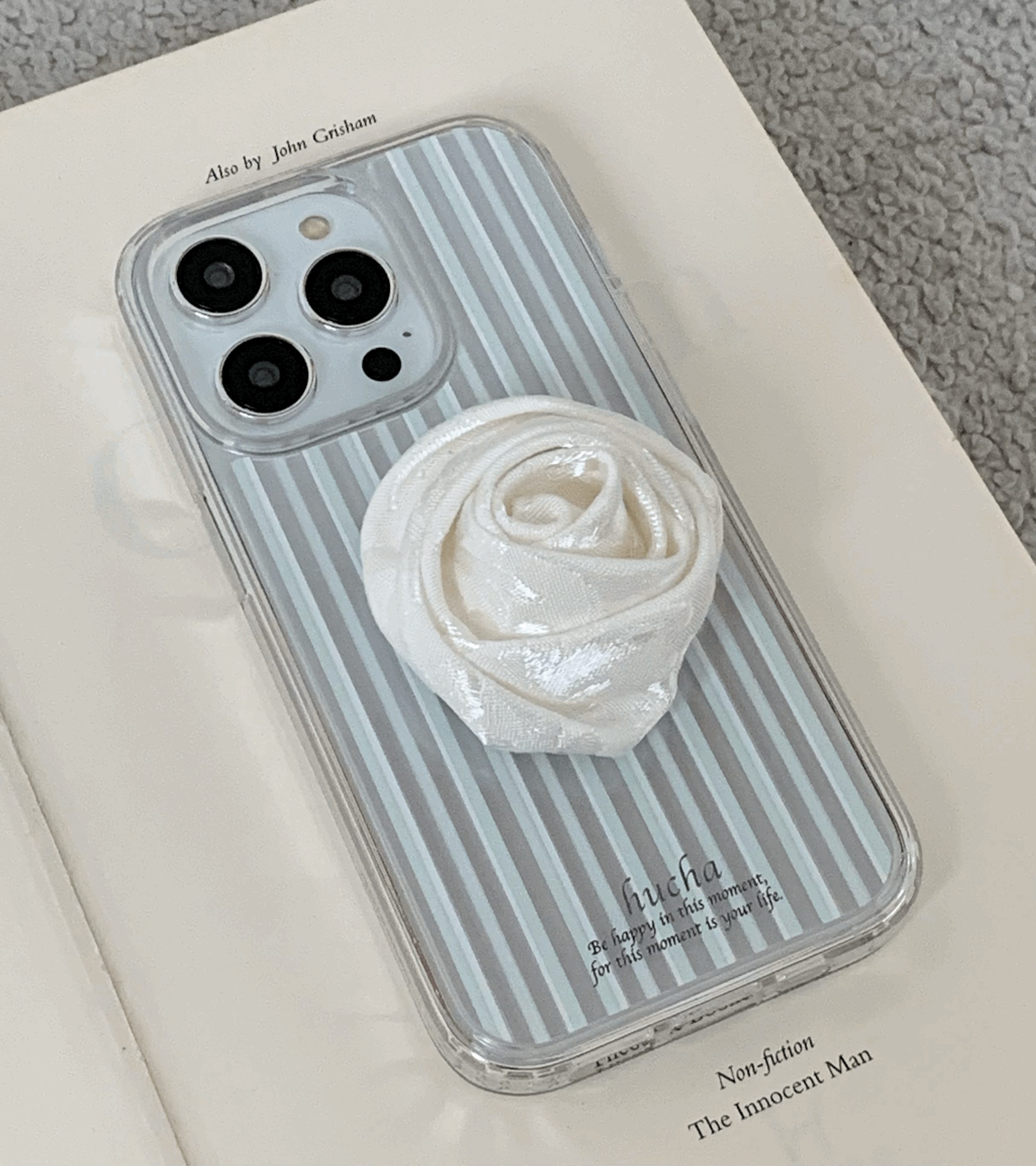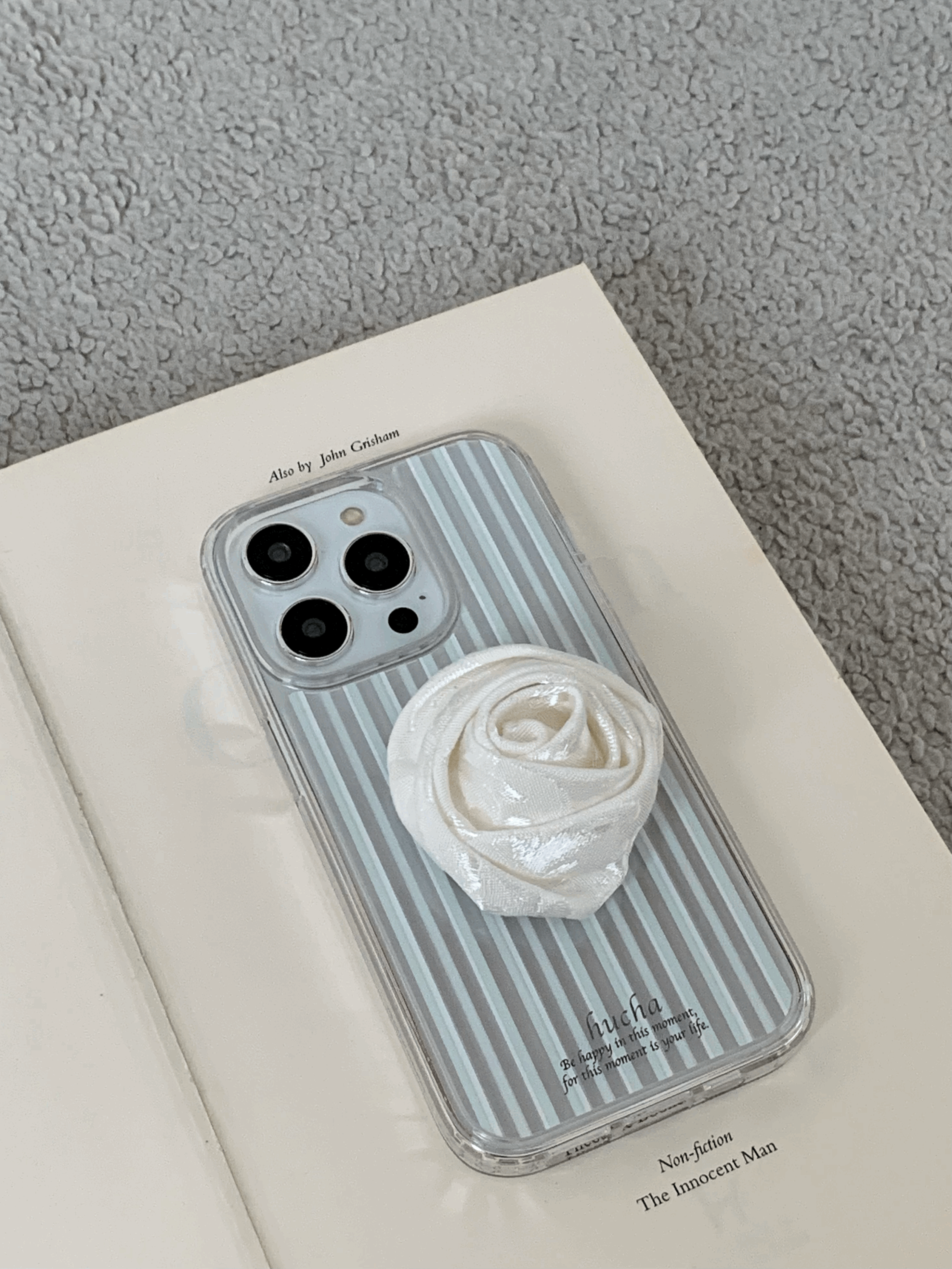 은은한 그레이 + 화이트+ 톤 다운된 스카이 색의 컬러로 부드러우면서도 조화로운 스트라이프 케이스입니다.